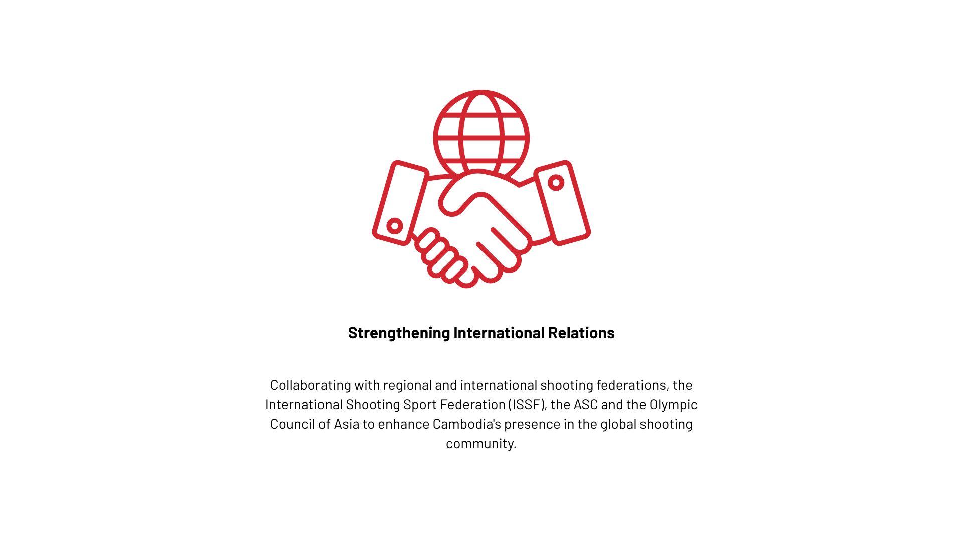 To establish Cambodia as a recognized force in international shooting sports, developing world-class athletes who proudly represent the nation while fostering a culture of excellence, discipline, and sportsmanship that inspires future generations.